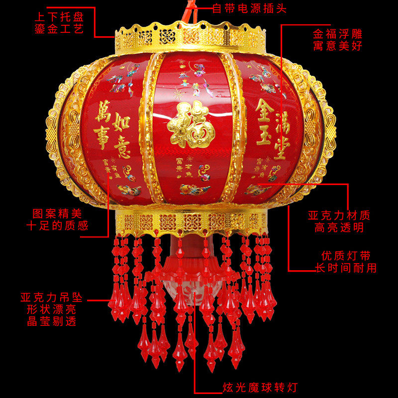 Seven colorful crystal rotating lanterns New Year Spring Festival Led walking coal oil lamp balcony gate Qiao relocating red lantern wedding lantern