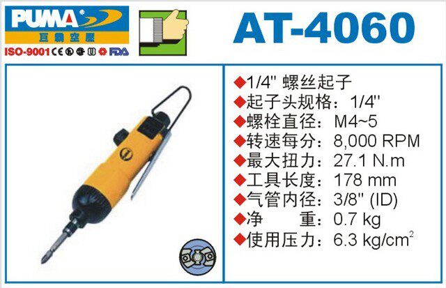 PUMA Jumba Pneumatic Screw Driver AT-4060A Pneumatic Screwdriver 1 4 Pneumatic screwdriver Big Mac A-4060