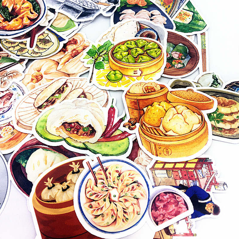 Hand account food stickers northern dumplings meat buns hand account stickers meat folder fried dumplings pasta diary illustration stickers