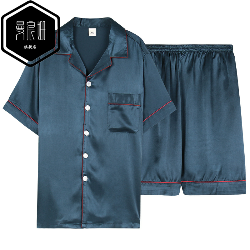 Boomer Couple Sleepwear Women's Summer Casual Thin ICE SILK PURE COLOR SHORT SLEEVE SUIT MEN SILK UPSCALE HOME CONSERVED