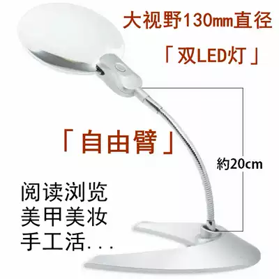 Japan with LED light large field of view 13cm desktop desktop magnifying glass elderly reading 2 times 20 high-definition vertical bracket