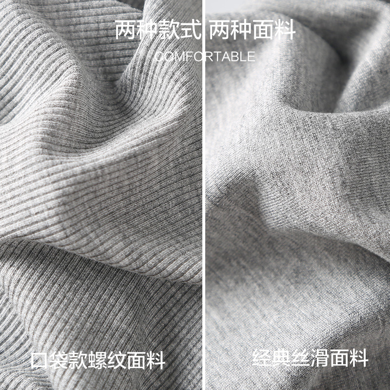 Light gray-pocket (threaded fabric) Dark gray-pocket (threaded fabric) Black-pocket (threaded fabric) Dark gray-no pocket (classic silky) Black-no