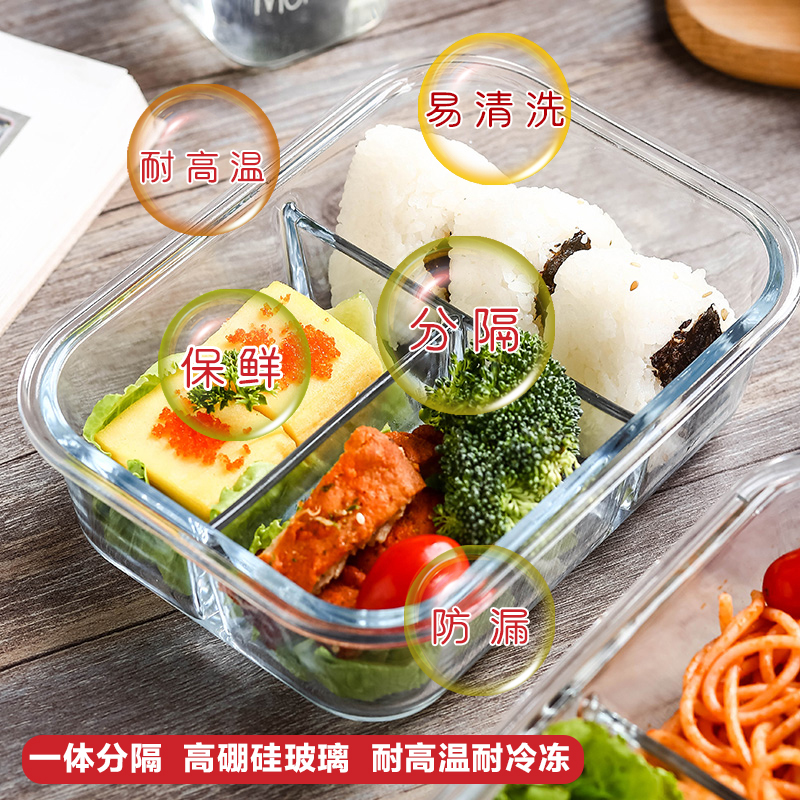 Student office worker divided lunch box fruit preservation box lunch box can be microwaved high borosilicate glass lunch box