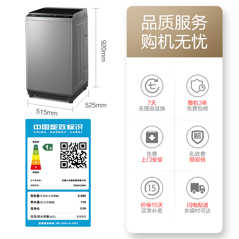 Little swan washing machine automatic household 8 kg intelligent variable frequency wave wheel elution integrated TB80V23DB
