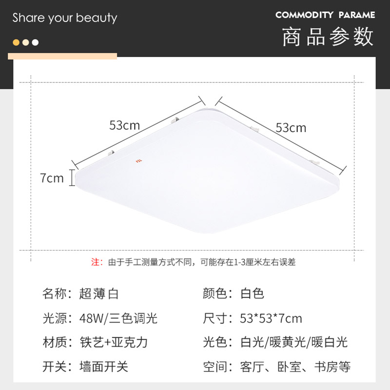 All-white square 33*33CM white light 25W all-white square 43*43CM white light 36W all-white square 53 * 53CM three-tone light 48