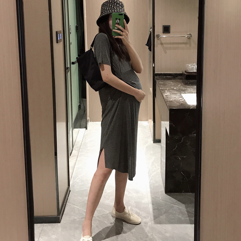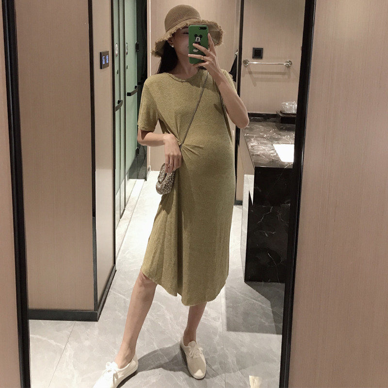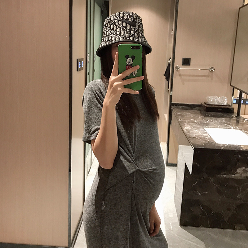 Golden cocoon 2022 new pregnant woman dress Han edition loose fashion mom knitted long skirt