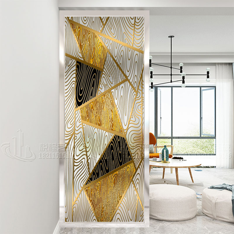 Custom-made art glass screen partition matte translucent double-sided effect European style porch background simple and modern