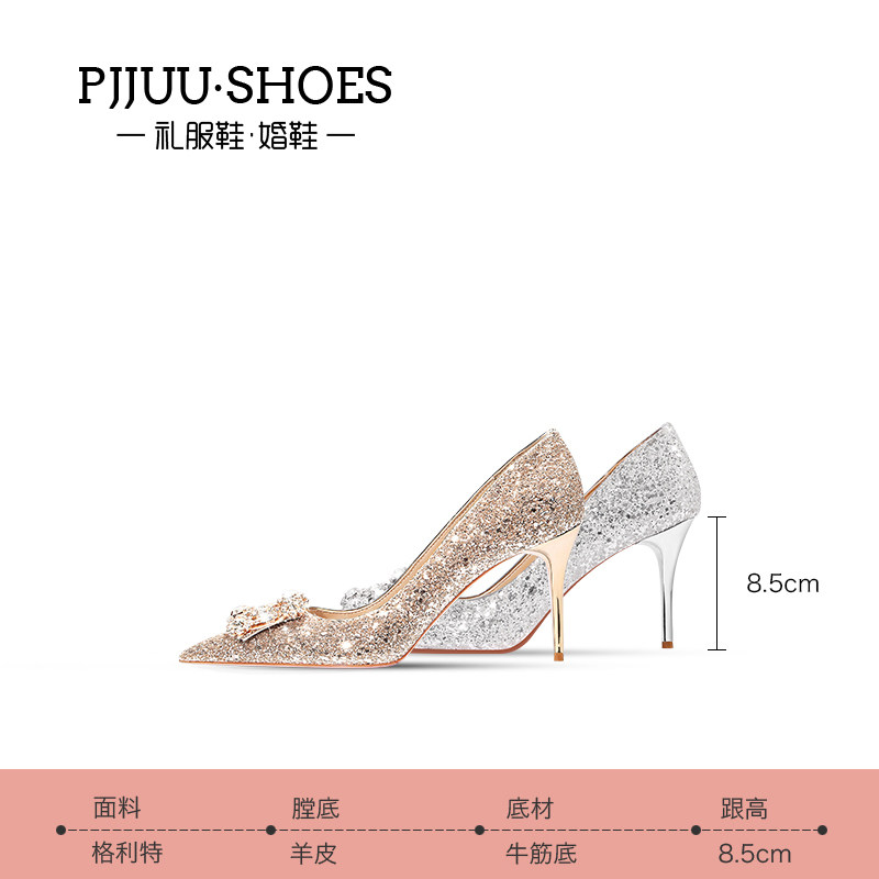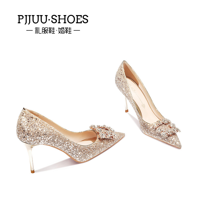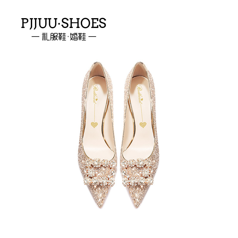 pjjuu water crystal shoes bridal main wedding dresses single shoe woman fine heel 2022 new high heels golden show and wedding shoes