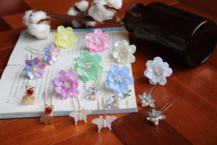 Yellow camellia hairpin Green camellia hairpin White camellia hairpin Beige camellia hairpin Pink camellia hairpin Blue camellia hairpin Purple red camellia hairpin Gradient powder blue hairpin Flower about 3