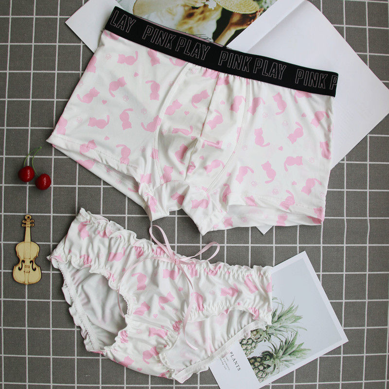 Lovers Briefs lovers Sweet Milk Silk Lingerie Suit Double Seductive Cute Men's Flat Corner Women Triangle New