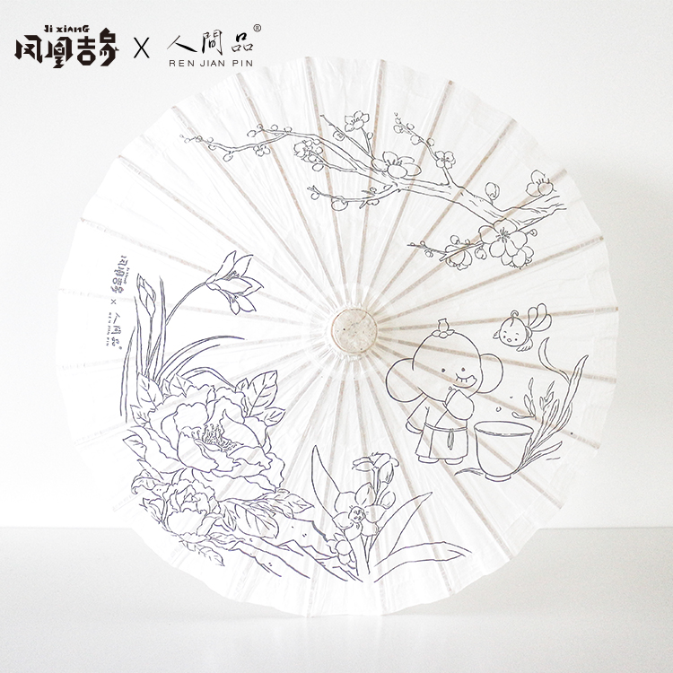 DIY small number white paper umbrella experience material bag paper umbrella House earthly goods white bottom white bottom line sketching small oil paper umbrella