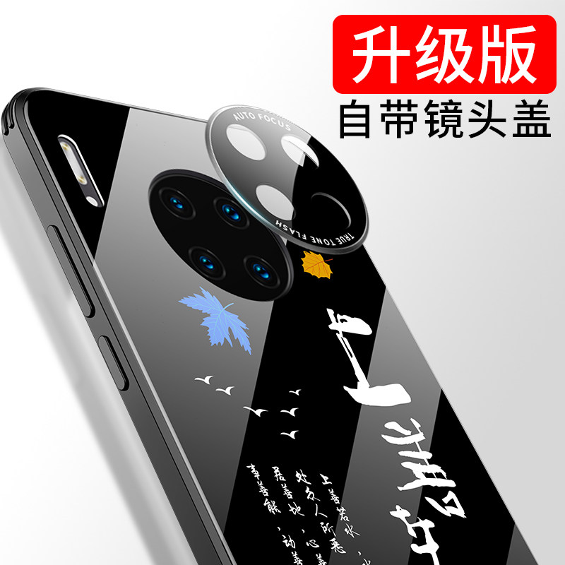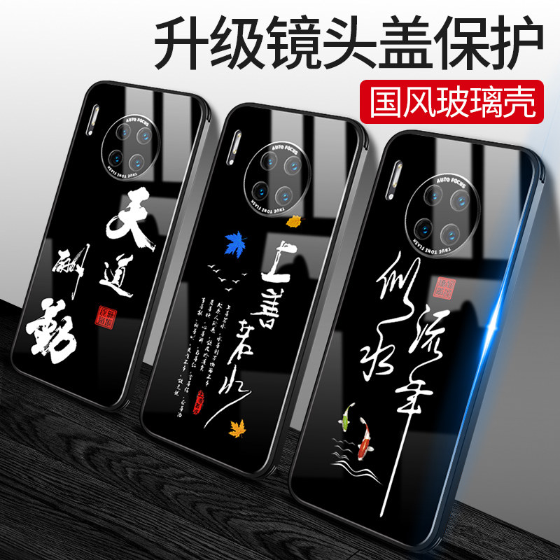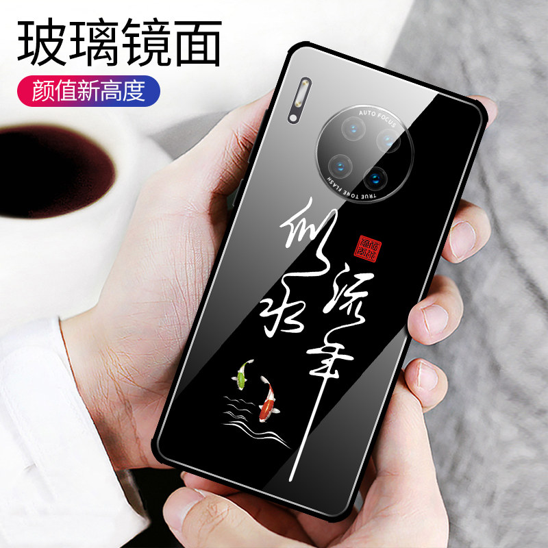 Huawei mate30pro mobile phone protection shell full-pack camera mate30 protective sleeve 5G anti-fall meat Three-zero Chinese wind calligraphy glass pr0 shell male silicone gel black ancient wind all