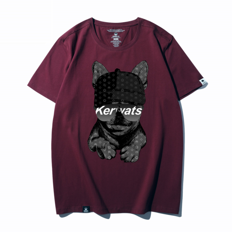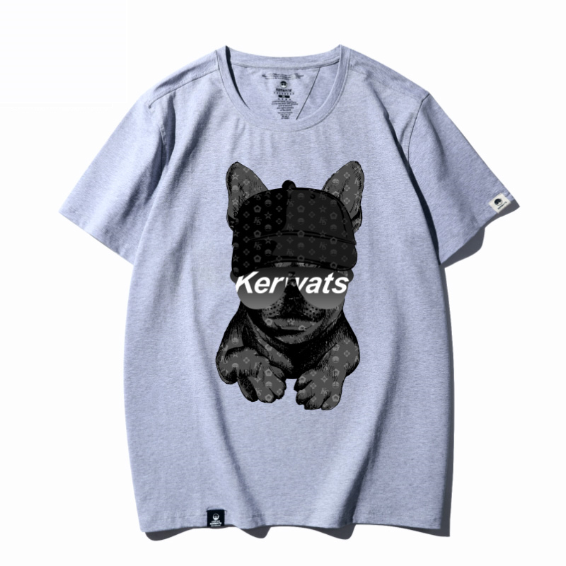 Tide brand dog head print short-sleeved T-shirt men's summer casual trend loose large size fat cotton couple half-sleeved ins