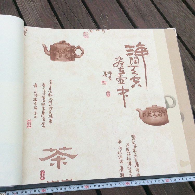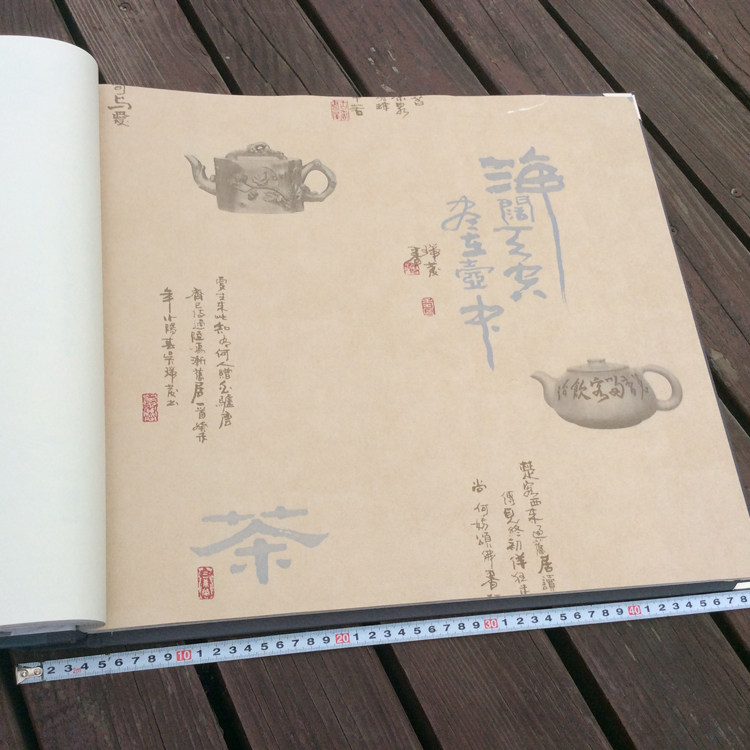 New Chinese classical tea culture Chinese style calligraphy wallpaper Tea house study dining room Living room background wall paper