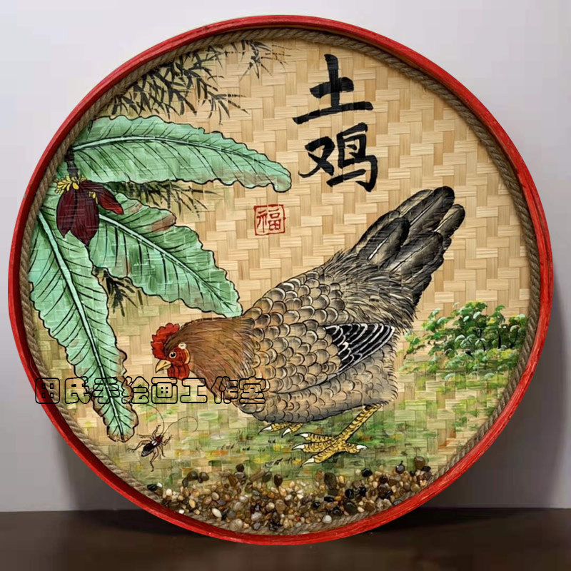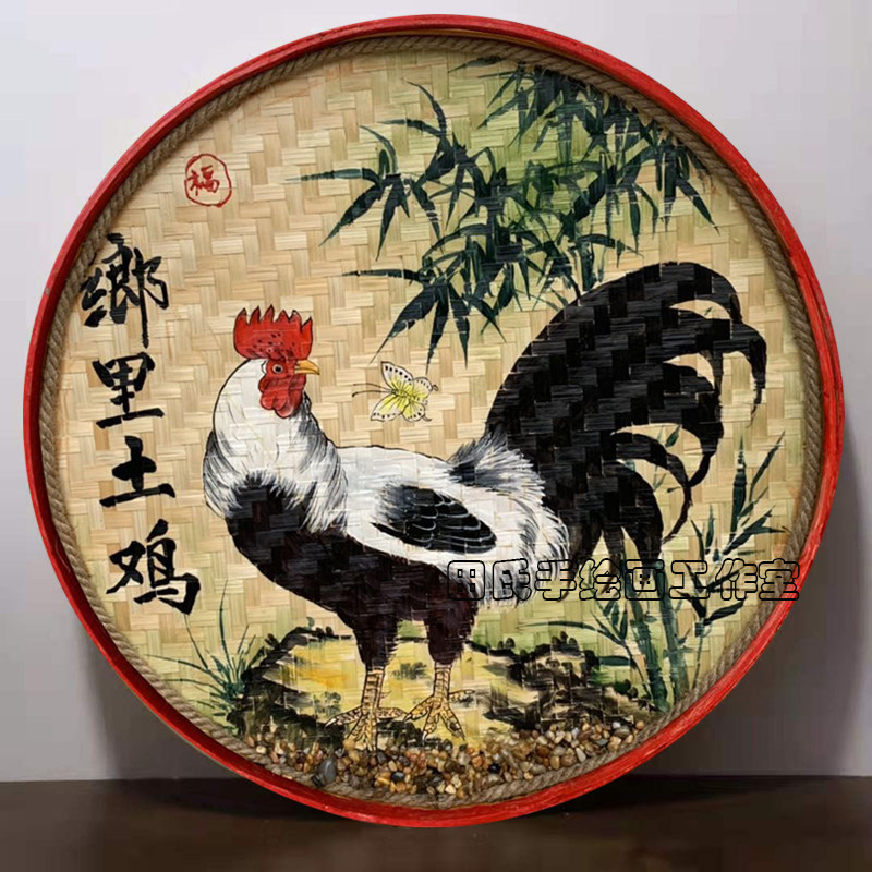Hand painting bamboo dustpan decorative painting retro nostalgic wall decoration hostel restaurant farm hotel wall pendant