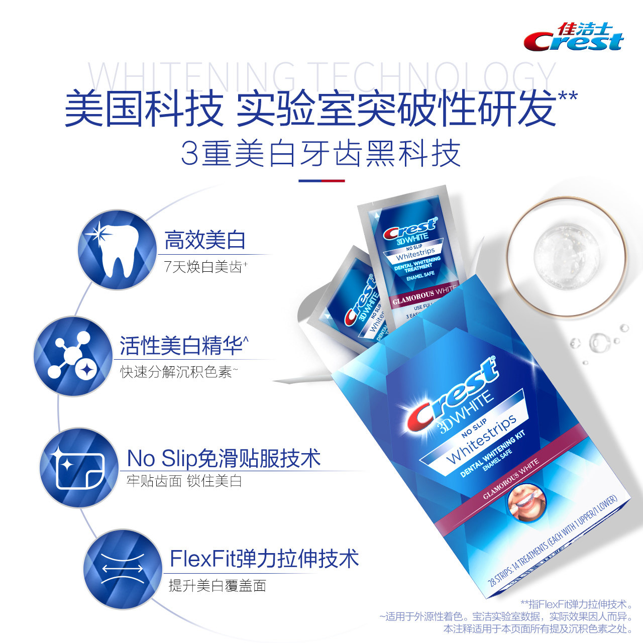Crest Whitening Tooth Sticker Remove Yellow Teeth WhiteNing Teeth USA Imported 3D Teeth Whitening Tooth Sticker 14 pairs of 28 pieces