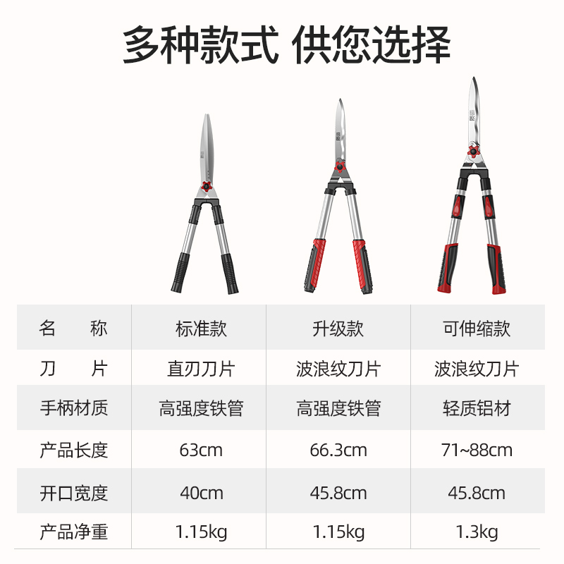 (Made in Japan) Straight-edged fence shears (SK5 head) (Made in Japan) Upgraded wavy fence shears (SK5 heads) (made in Japan) Aluminum alloy retractable wavy fence shears (SK5 heads)