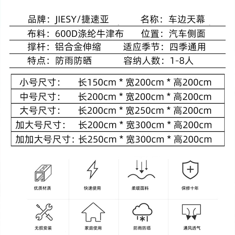 Outdoor car side tent car side awning high-end car sunshade sunscreen rainproof canopy Oxford cloth shrinkage