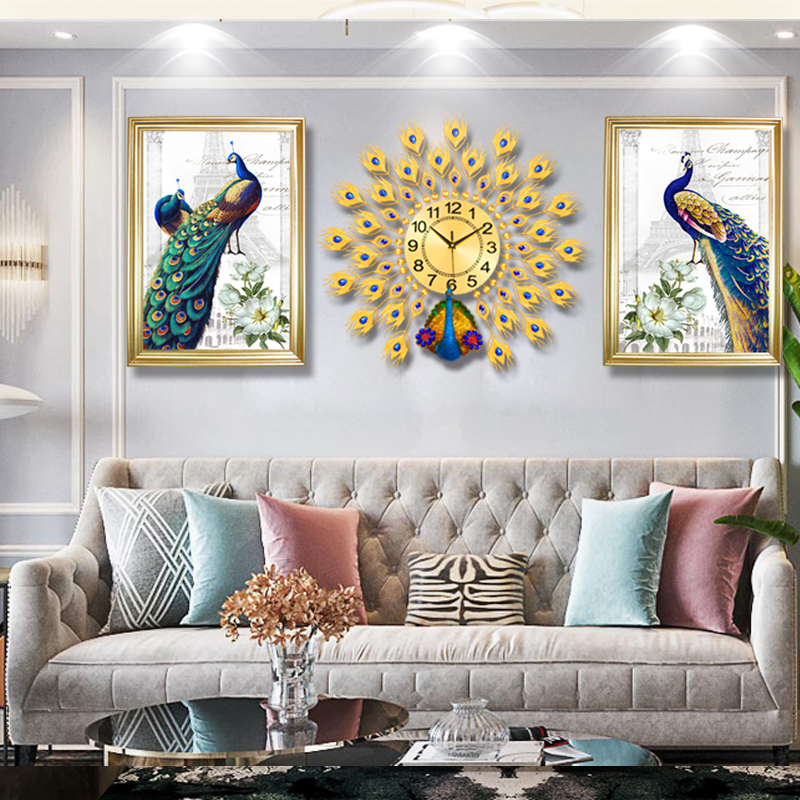 Peacock and watch hanging clock Living room table Modern minimalist Personality Creative Home Electric Meter Box Background Wall Decoration Painting Clock