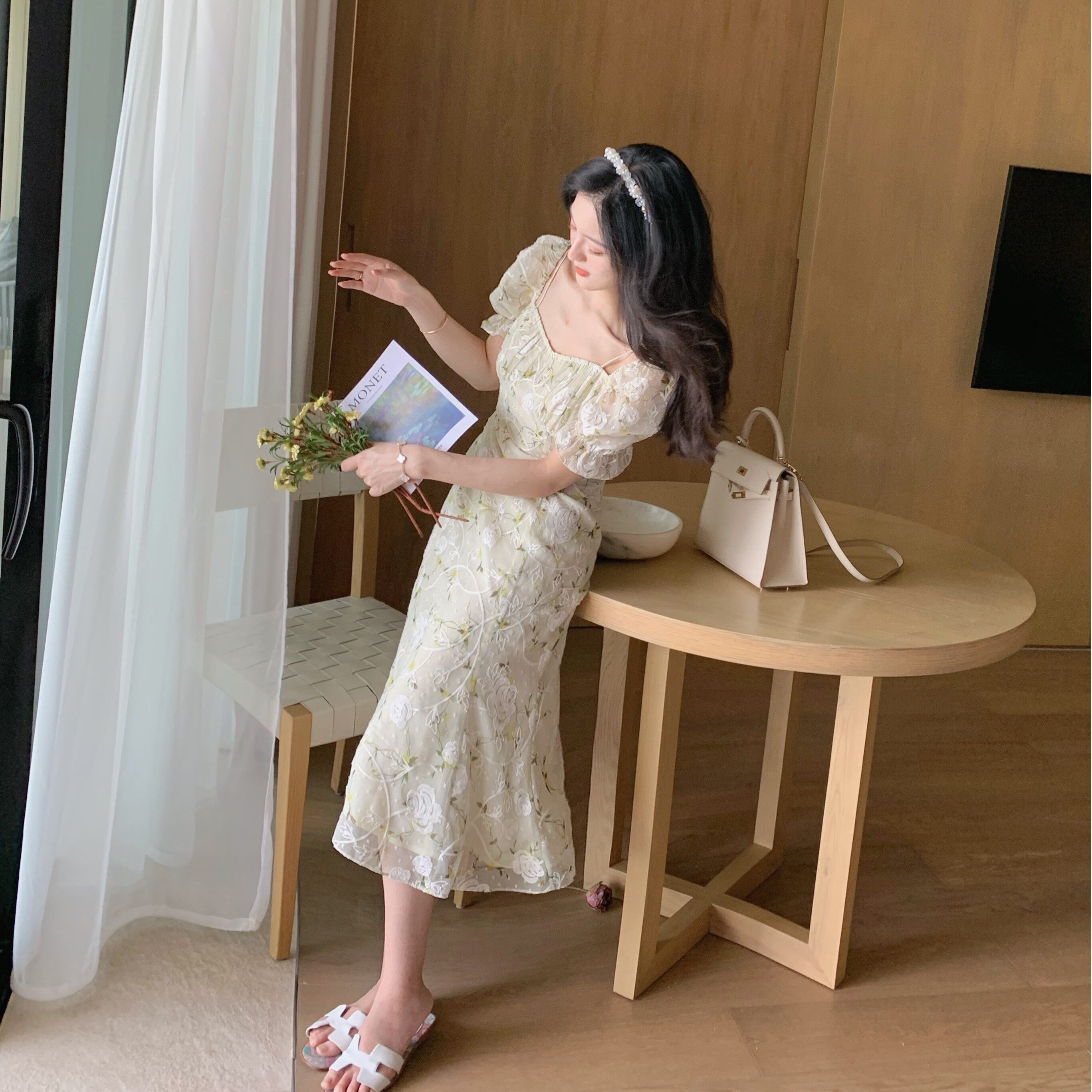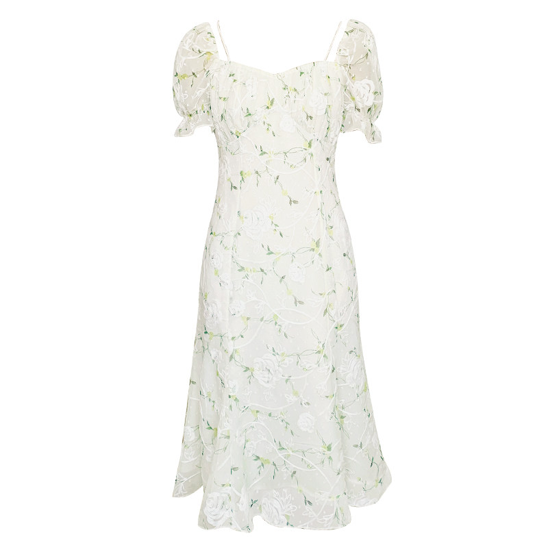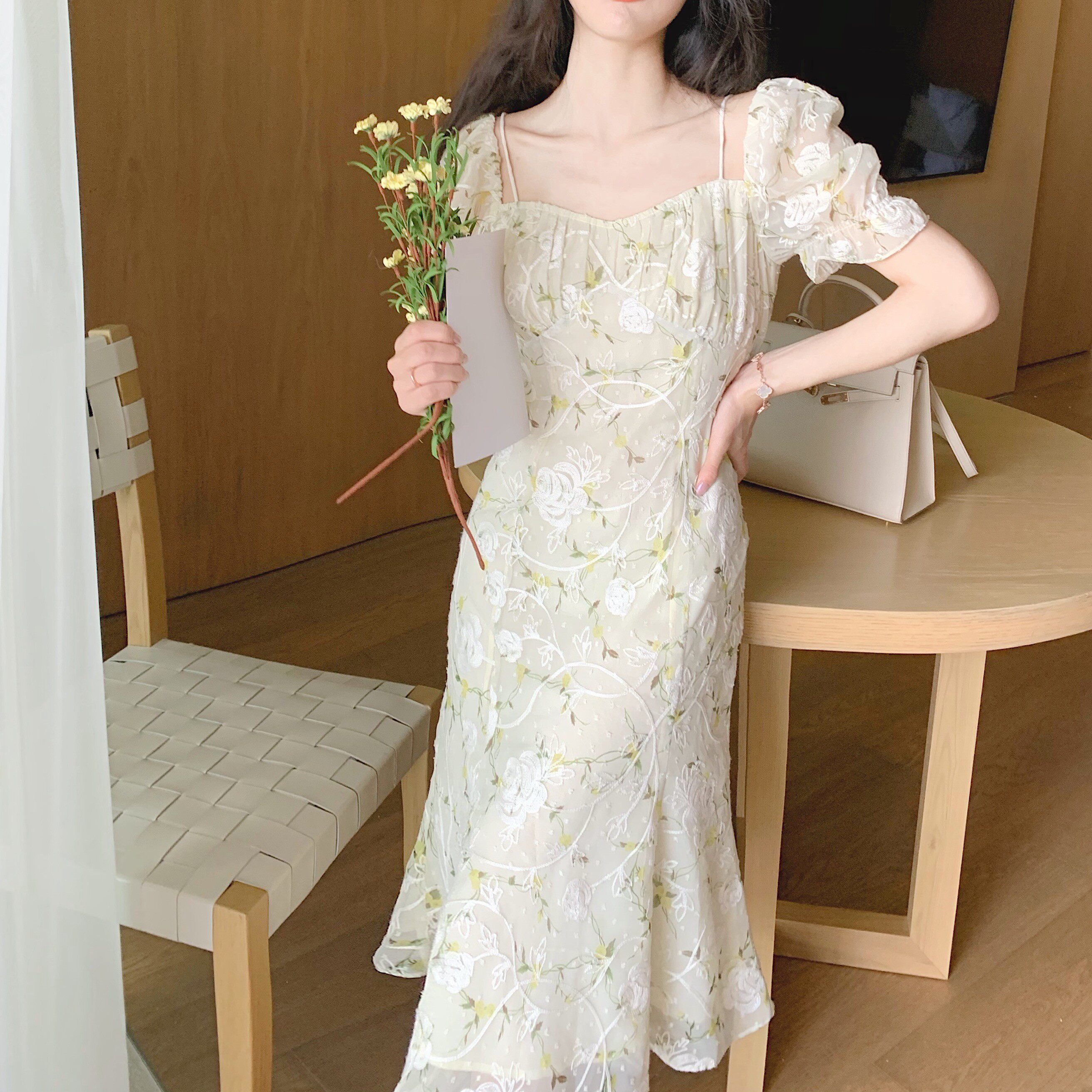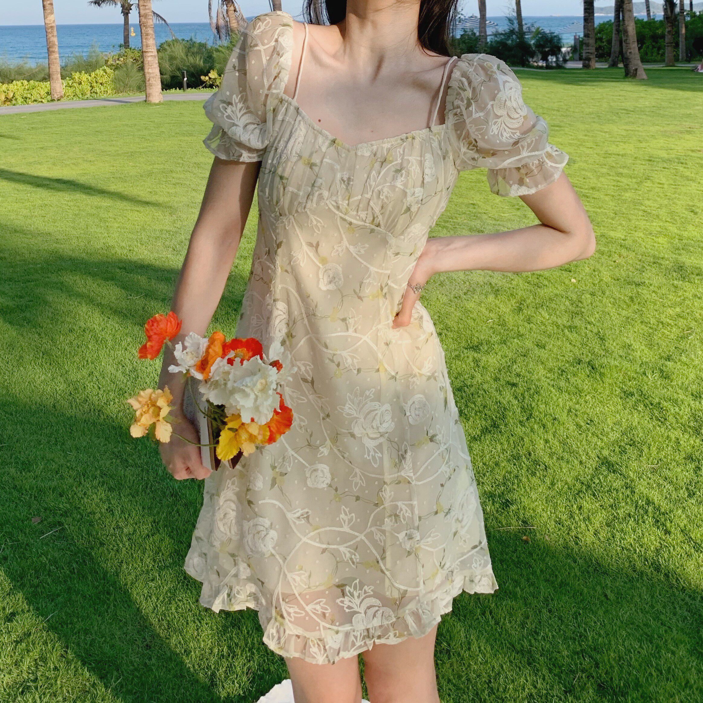 From a floral suspender skirt female summer French style 2021 new temperament square collar retro sweet small dress