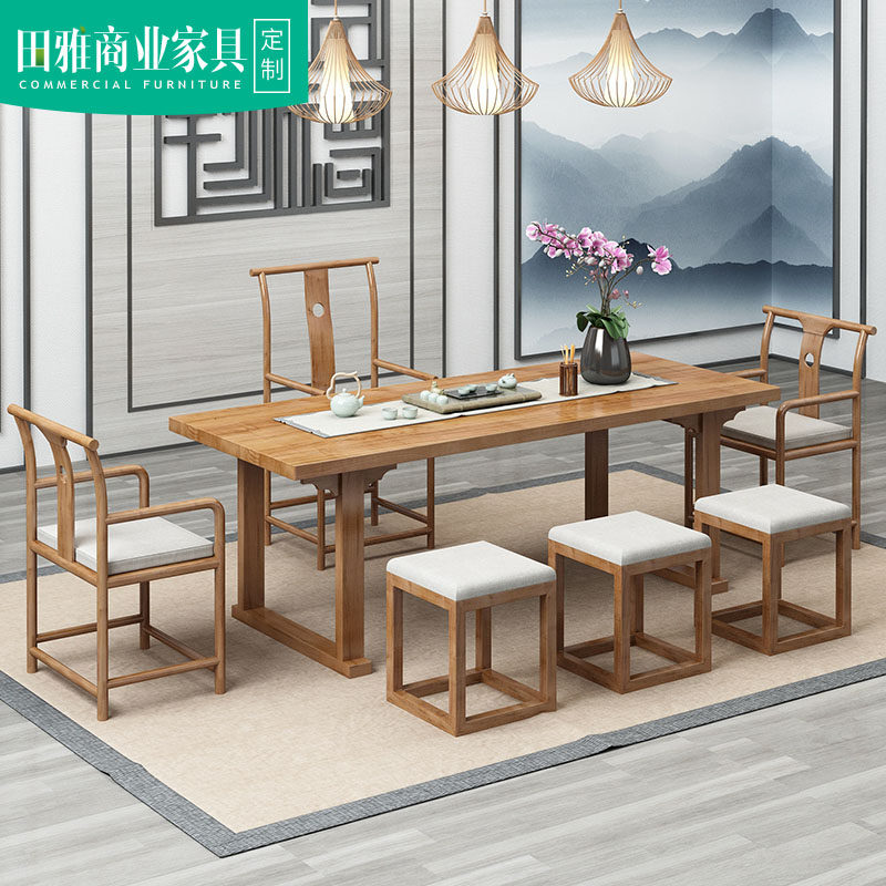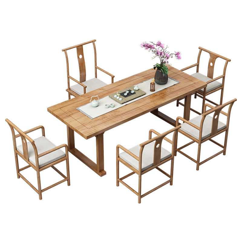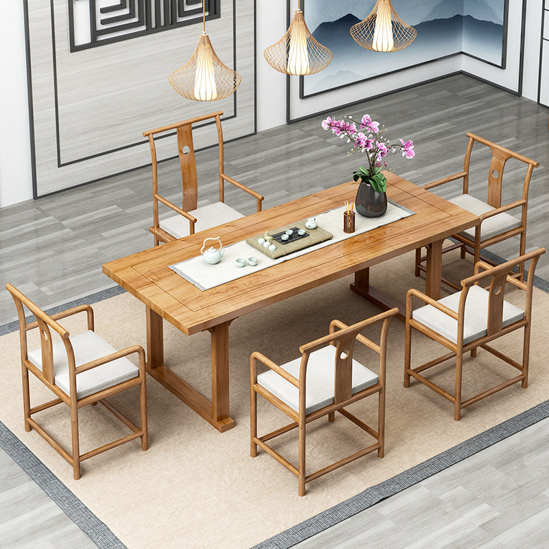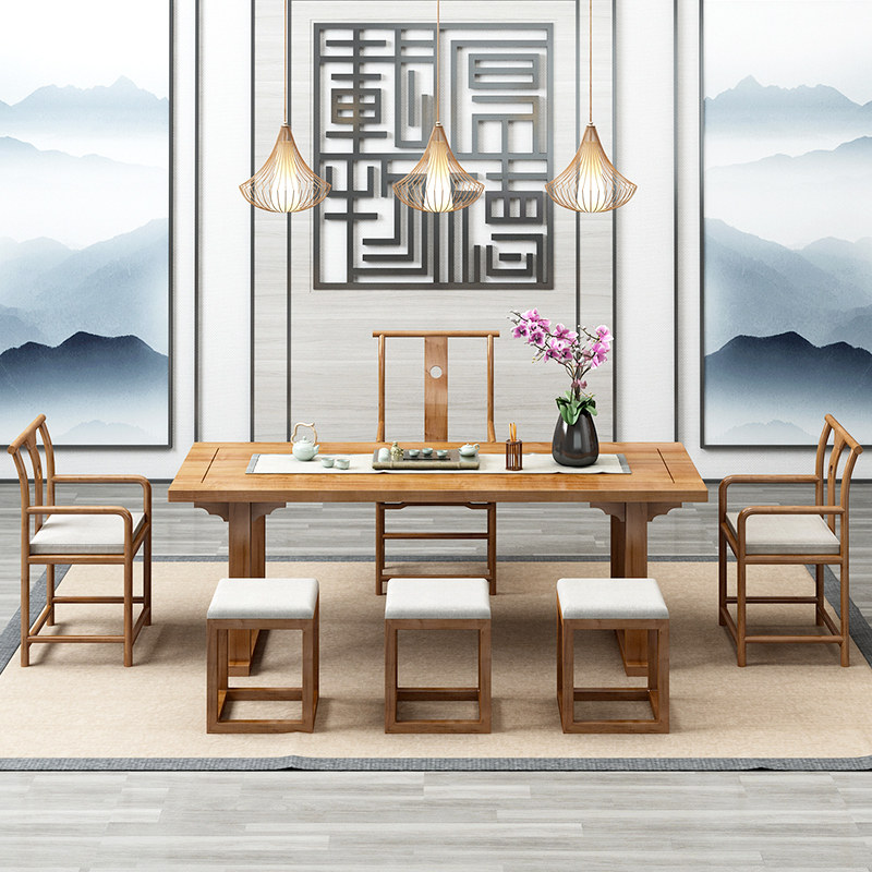 New Chinese kung fu tea table and chairs combination suit Zen solid wood tea table minimalist office will guest tea for a few tables