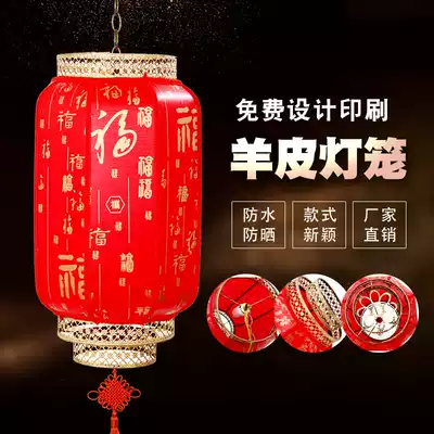 Sheepskin red lantern outdoor waterproof Chinese antique winter melon lantern hotel door interior decoration advertising Lantern