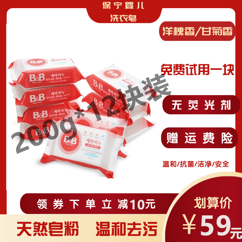 Korea Baoning soap Laundry soap 200g*12 pieces Acacia fragrance newborn baby bb soap Baby children's diaper soap