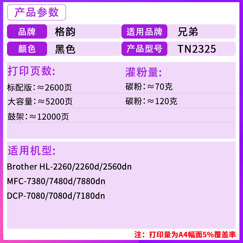 TN2325 Toner Cartridge DR2350 Cartridges and Drum Racks TN2325 Cartridges and DR2350 Cartridges Set (on-the-go) TN2325X High-capacity powder cartridge TN2325X Cartridge s DR2350 Cartridge Large Capacity Set (on-the-go)