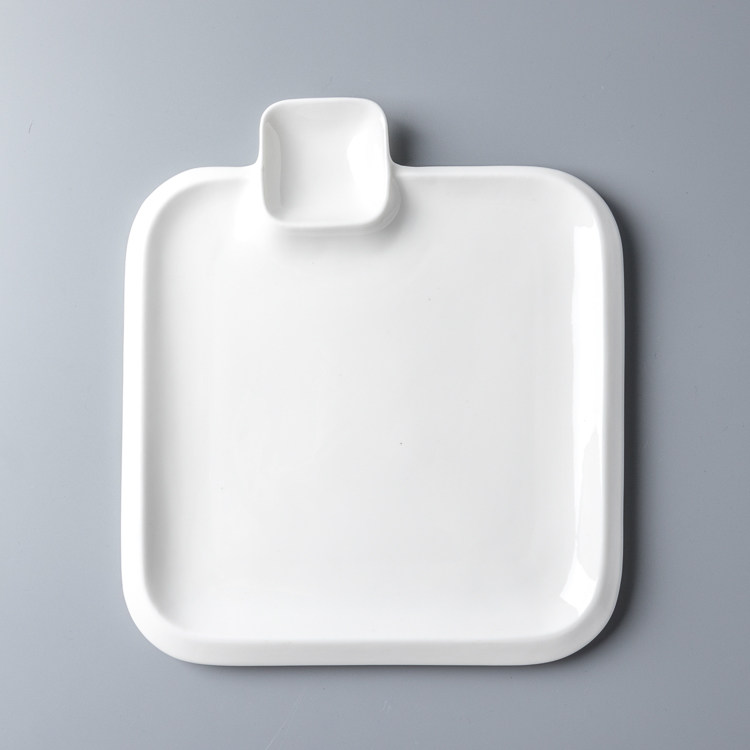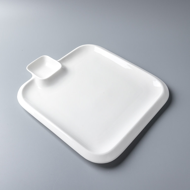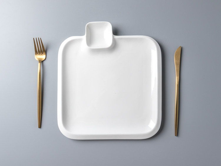Creative ceramic household white square with grid plate dumpling plate French fries plate snack plate cold dish plate with sauce grid