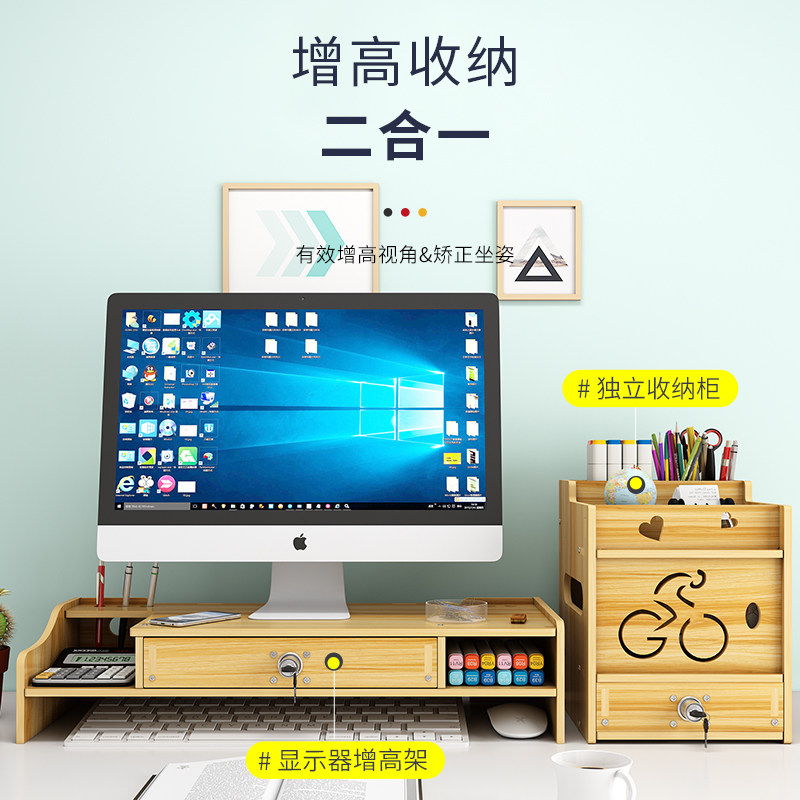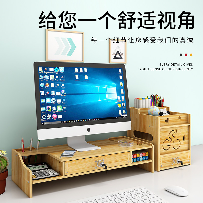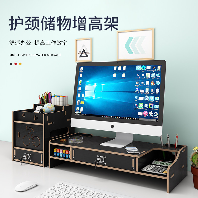 Computer screen Heightening Rack Office Supplies Office Desktop File Finishing Containing shelf Pen Holder pen holder stationery containing table Layered Shelve Sub Woody File Box Information Shelf Deity