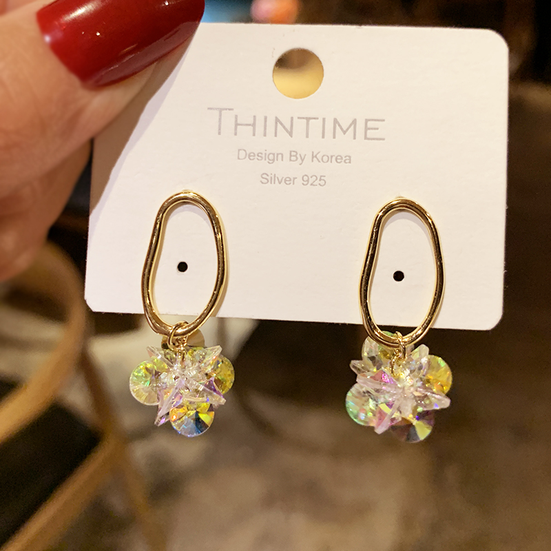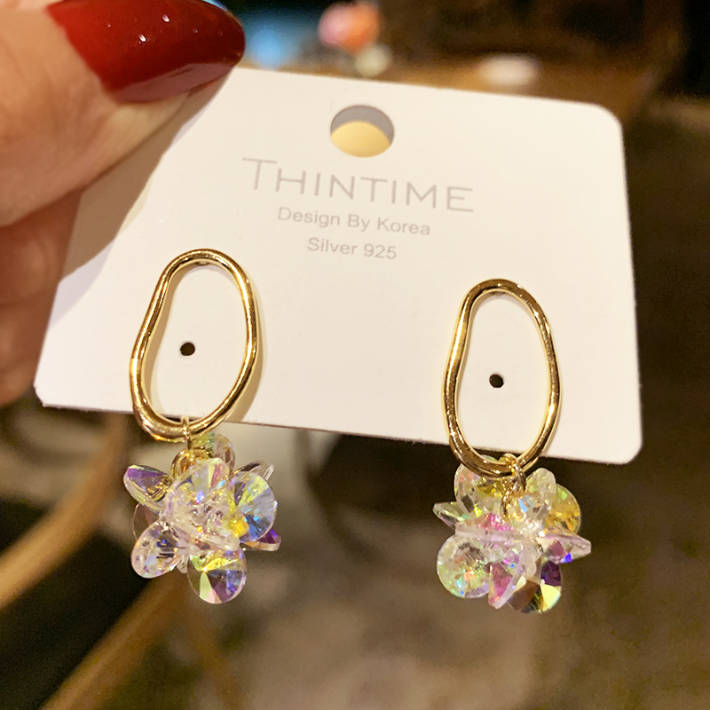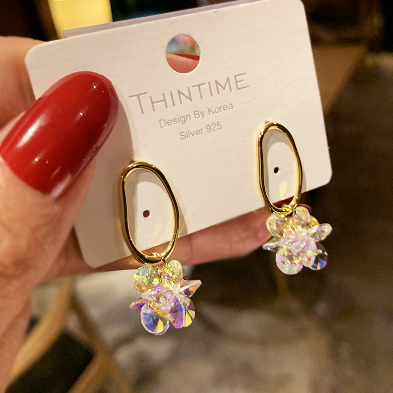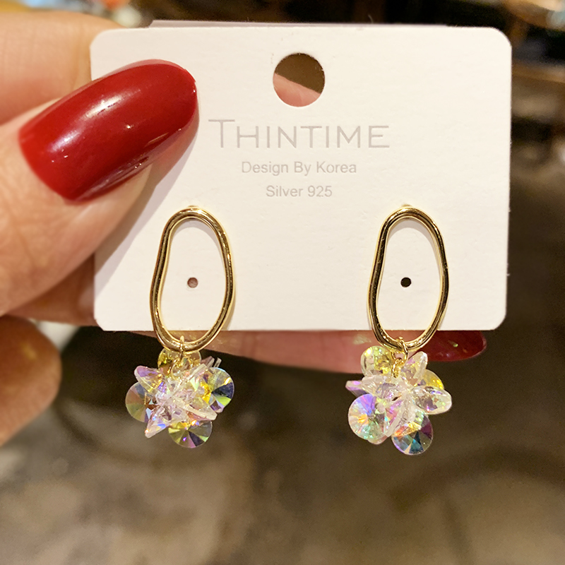 Dongdaemun Super Fairy Crystal Flower Earrings Women Korean Temperament Net Red Tide Earrings Sterling Silver Summer Fresh and Versatile Earrings