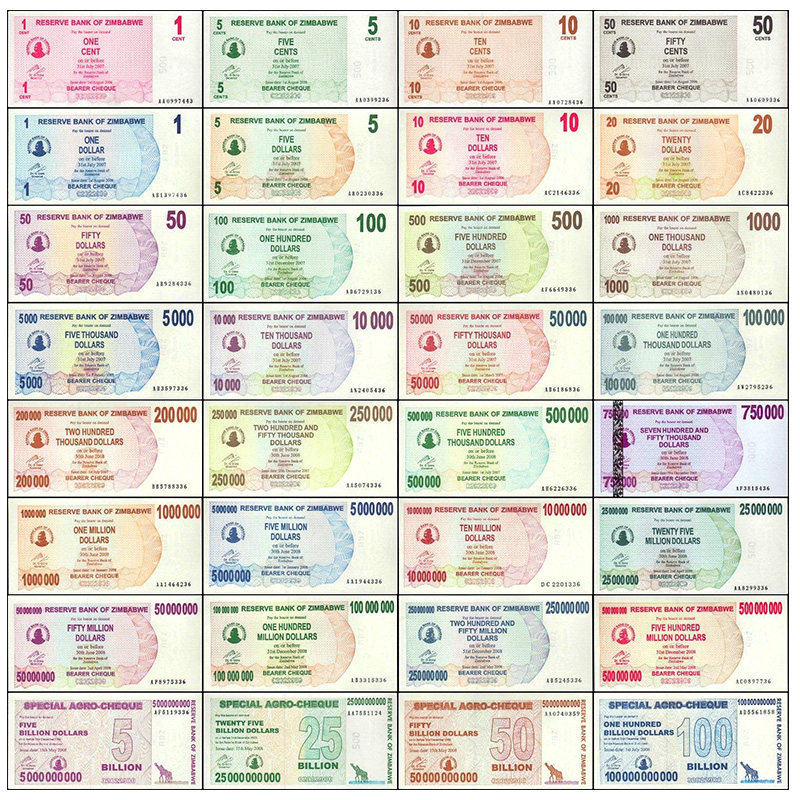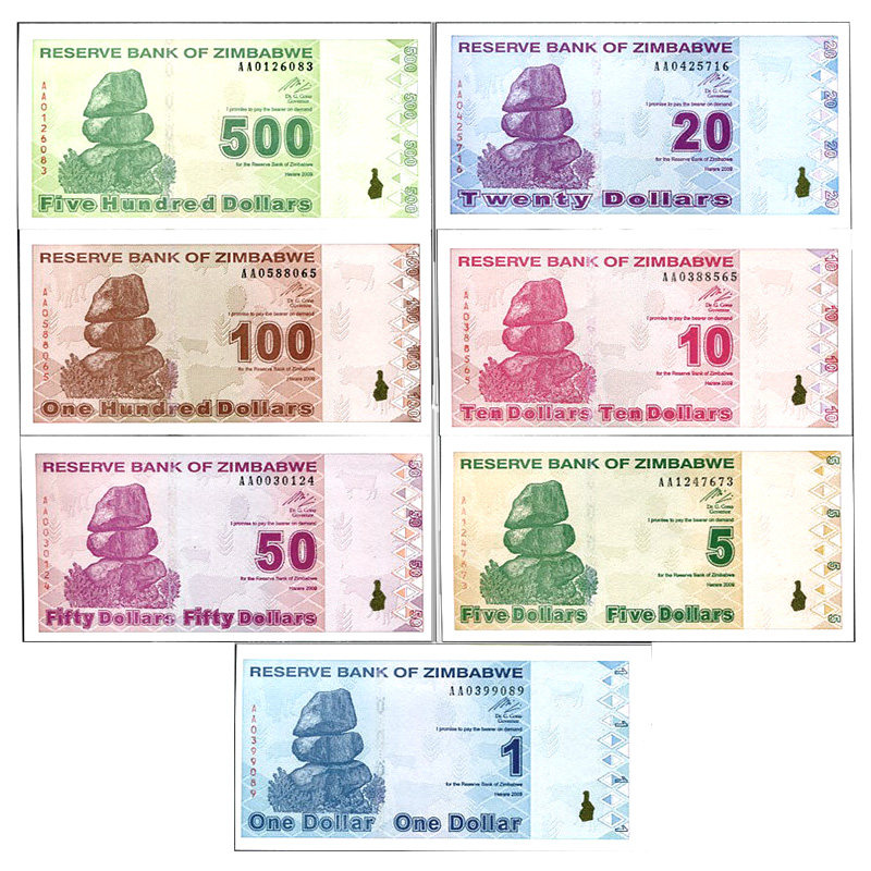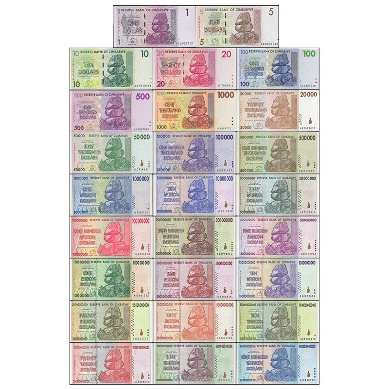 Zimbabwe banknotes 66 (1 minute-100 trillion) large set of one, two, three versions of the large set of difficult to collect