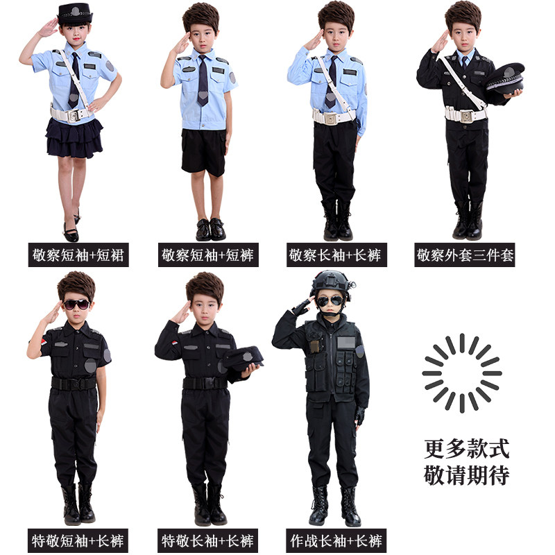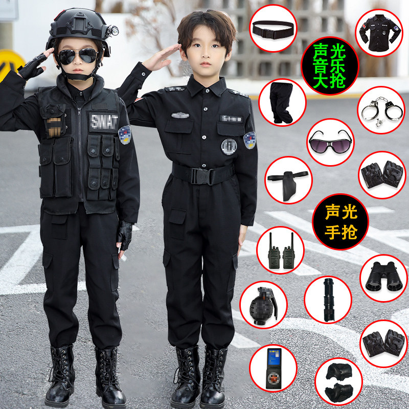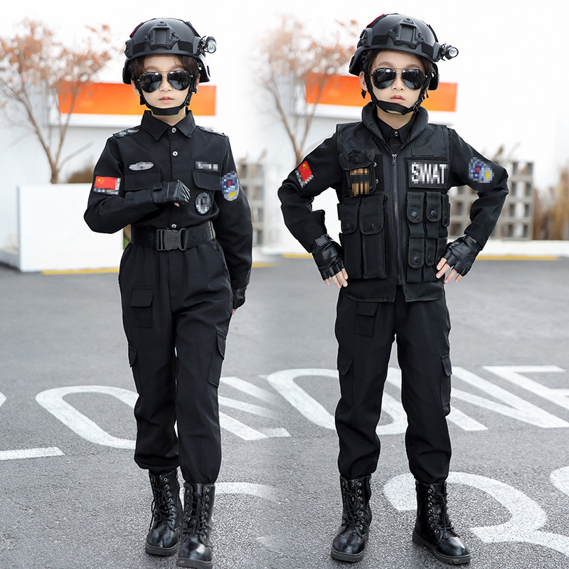 Children's military uniform police uniform SPECIAL police service soldier clothes small police uniform police uniform police uniform special soldier plus velvet set winter model