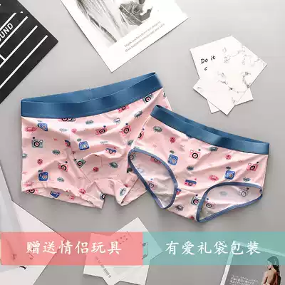 2-pack couple underwear Ice Silk sex puzzled cute sexy underwear a man and a woman couple passion pair set