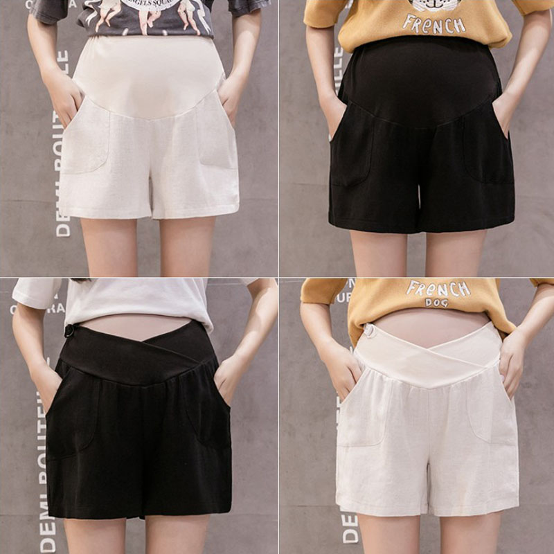 Pregnant Woman Shorts Summer Thin Summer Clothing Fashion Cotton Linen Low Waist Sumpsuit Pants Loose Broadlegged Pants Interior Lap Pants Outside