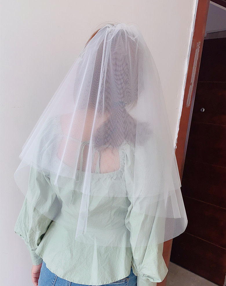 Korean-style new simple double-layer short song Hye-kyo with the same veil collar certificate registration anniversary headdress Mori Chaoxian