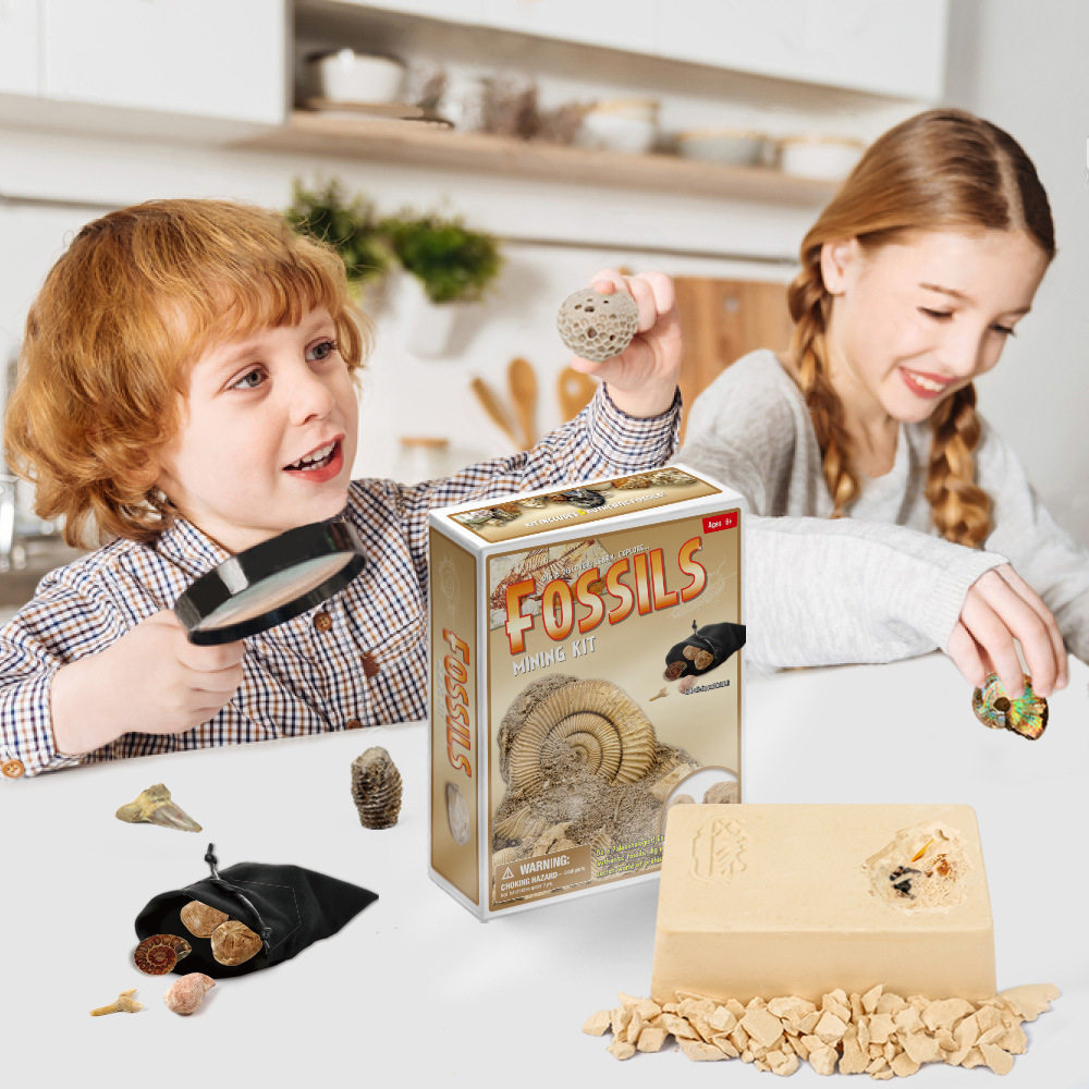 Shell fossil archaeologists dig toys ammonite natural real crystal ore volcano treasure digging children dig treasure