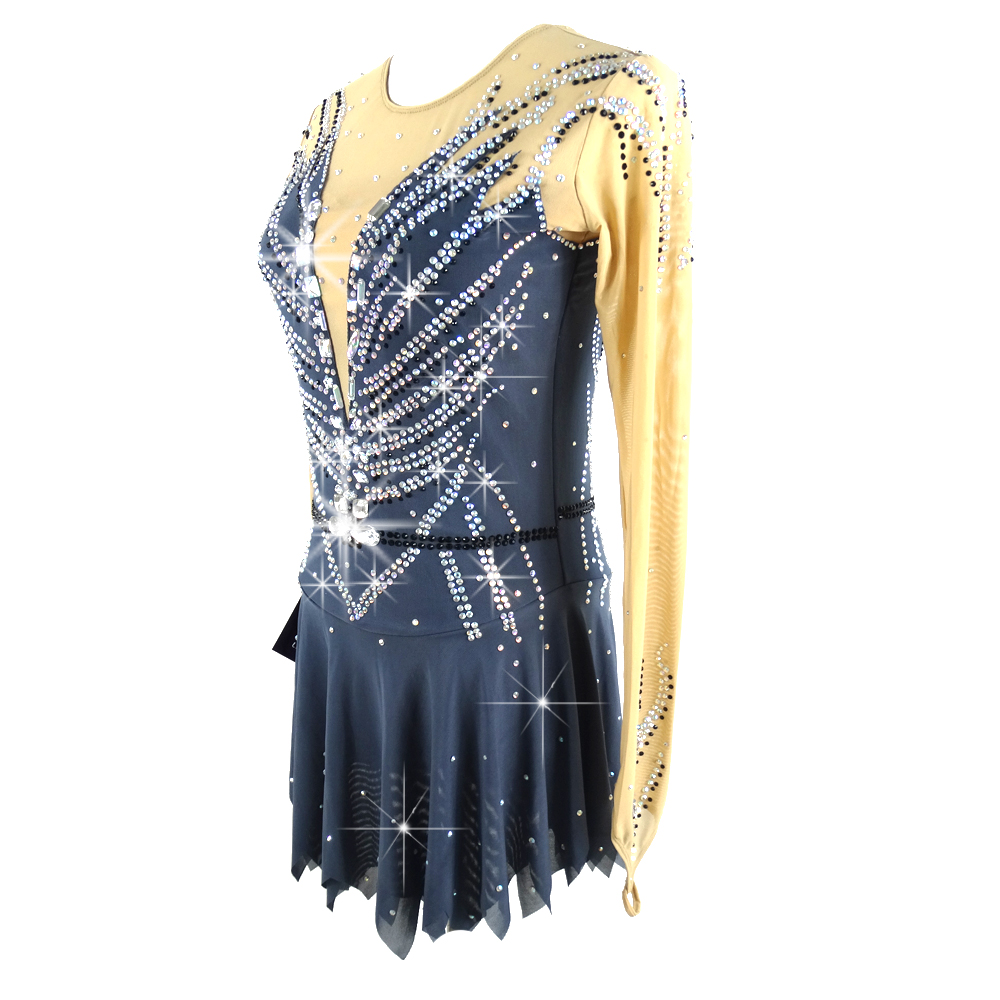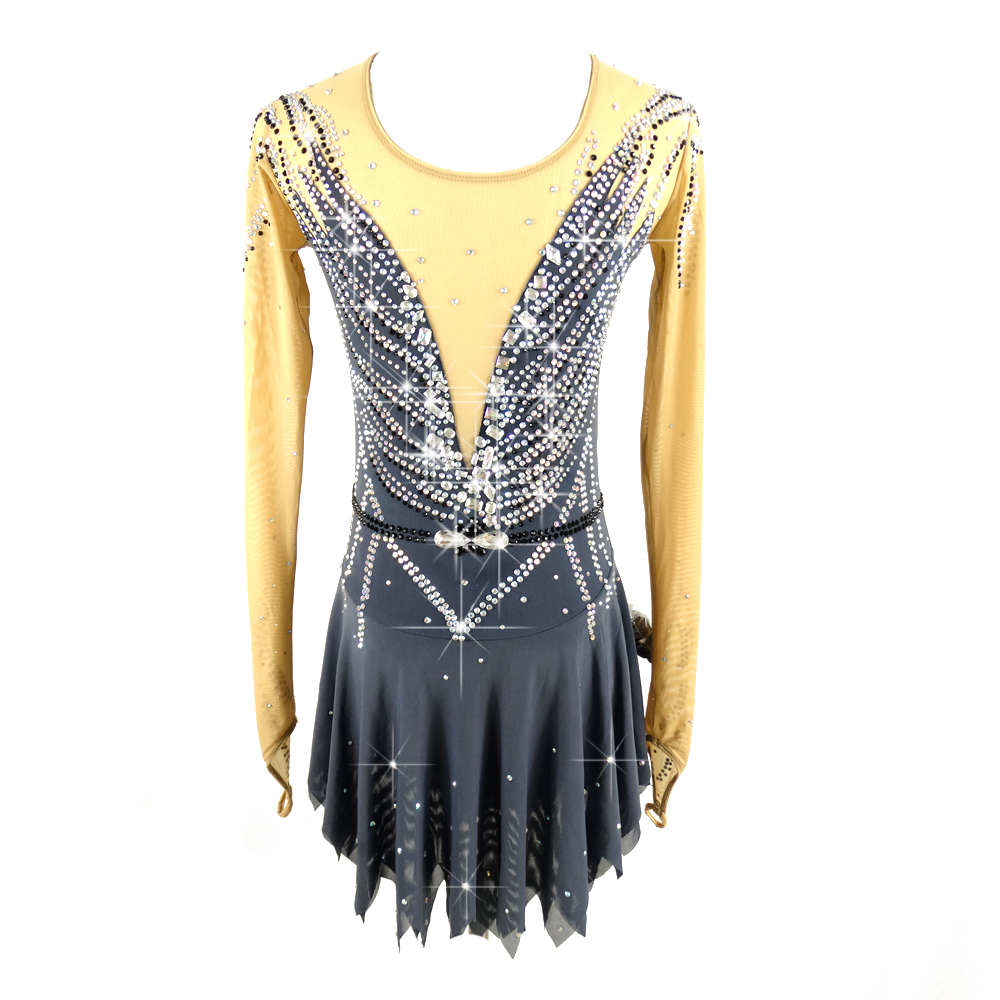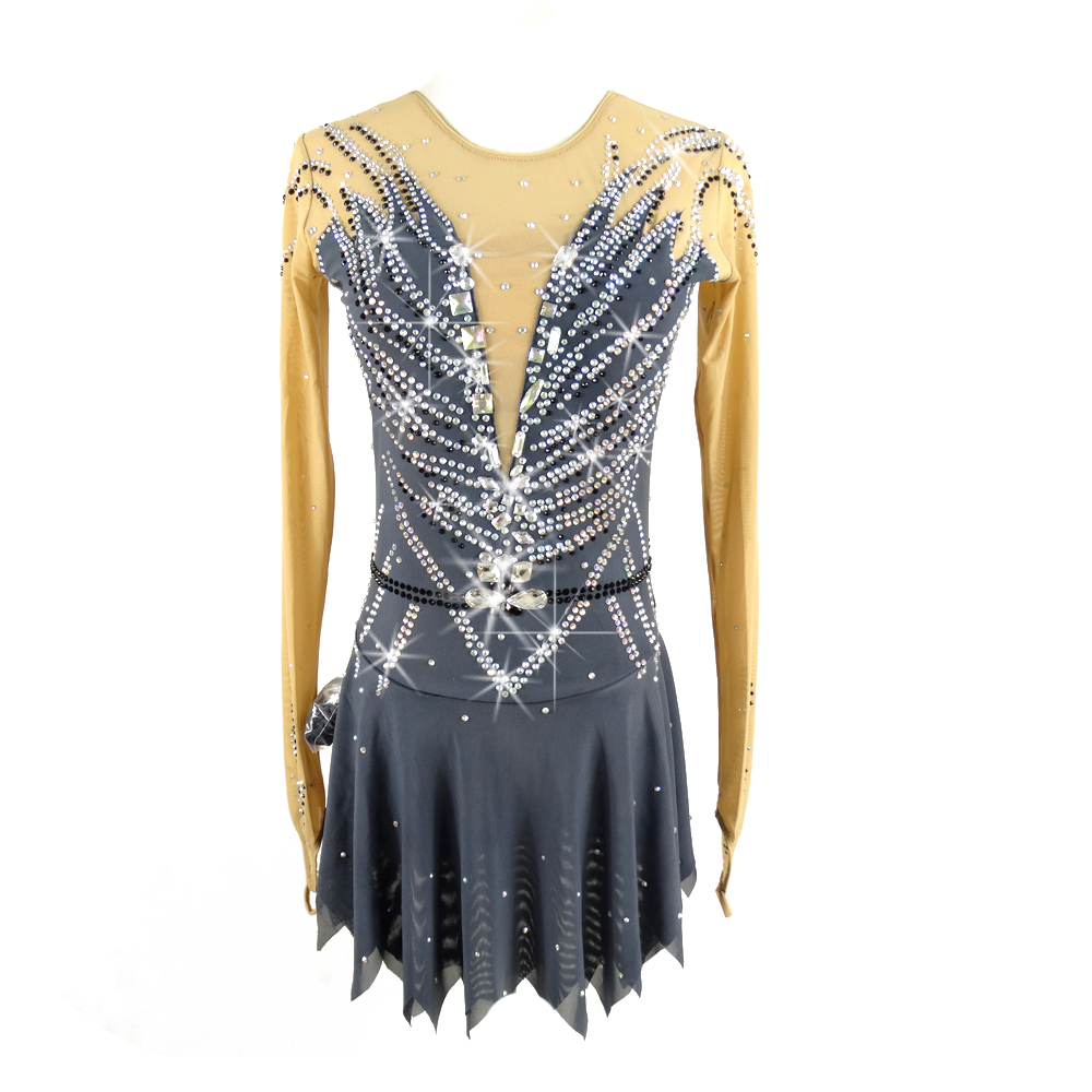 LIUHUO new figure skating suit customized adult girl's race test exam short skirt grey BD266