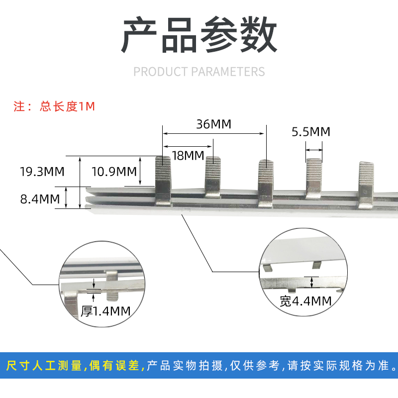 2P60A electrical busbar copper tinned 36mm spacing open wiring row distribution box circuit breaker connection