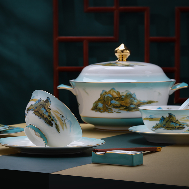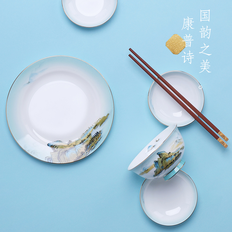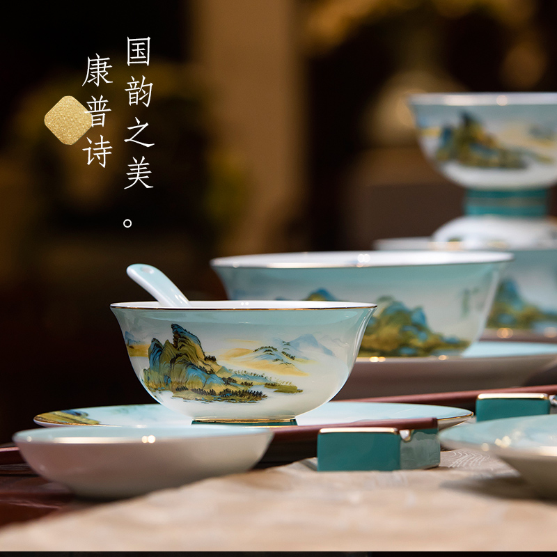 Conp poetry Forbidden City thousands of miles and mountains Jingdezhen Skull Porcelain Rice Bowl Large Bowl Large Bowl small bowl Soup Bowl dish dishes dishes-Taobao