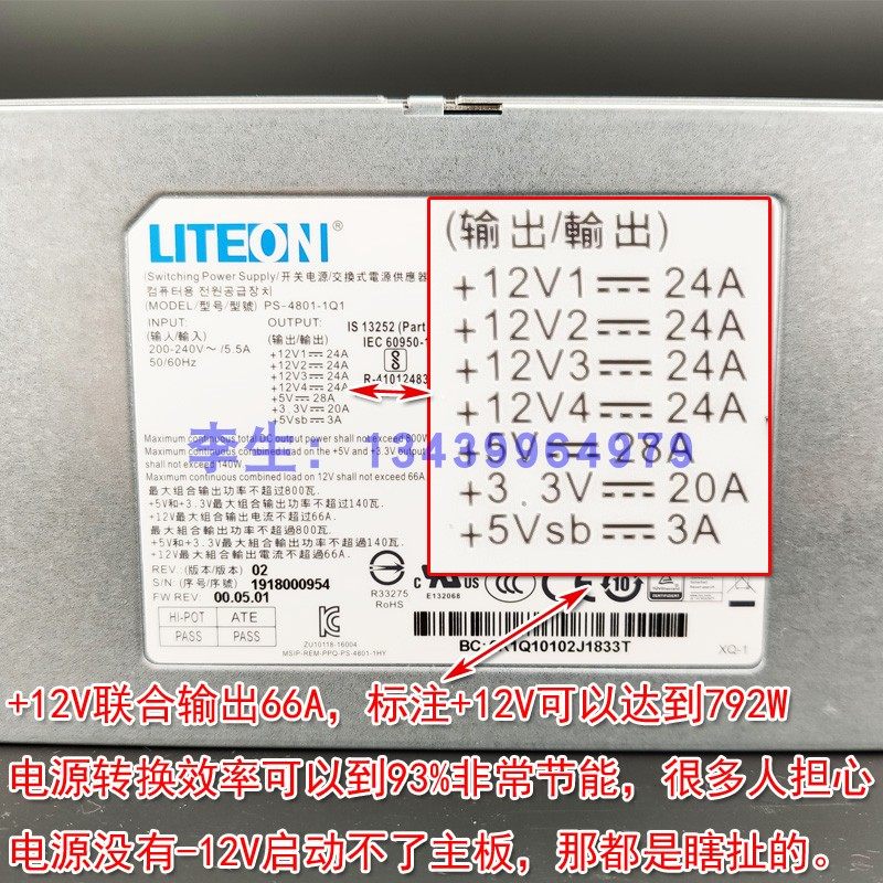 Taiwan LITE-ON 1U 800W rackmount server power supply can be changed to cat fan 12V output can be up to 792W