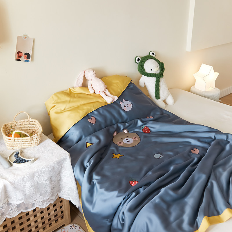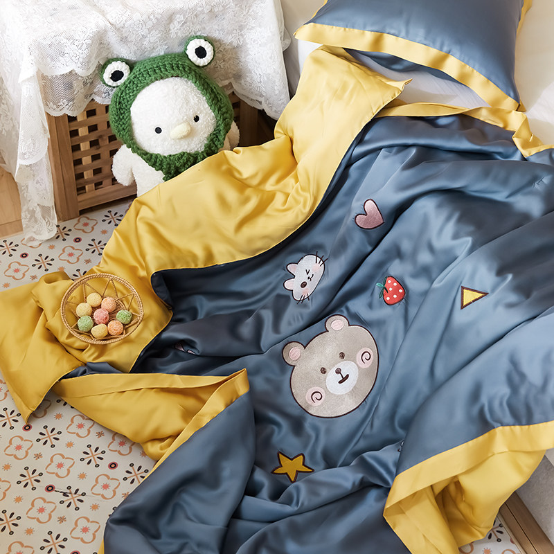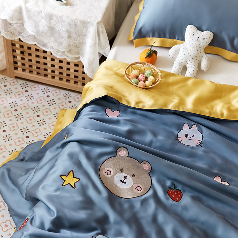 Cartoon Embroidered Thin summer 60 heather children Summer cool by ice silk Kindergarten Nap Air Conditioning by a machine washable