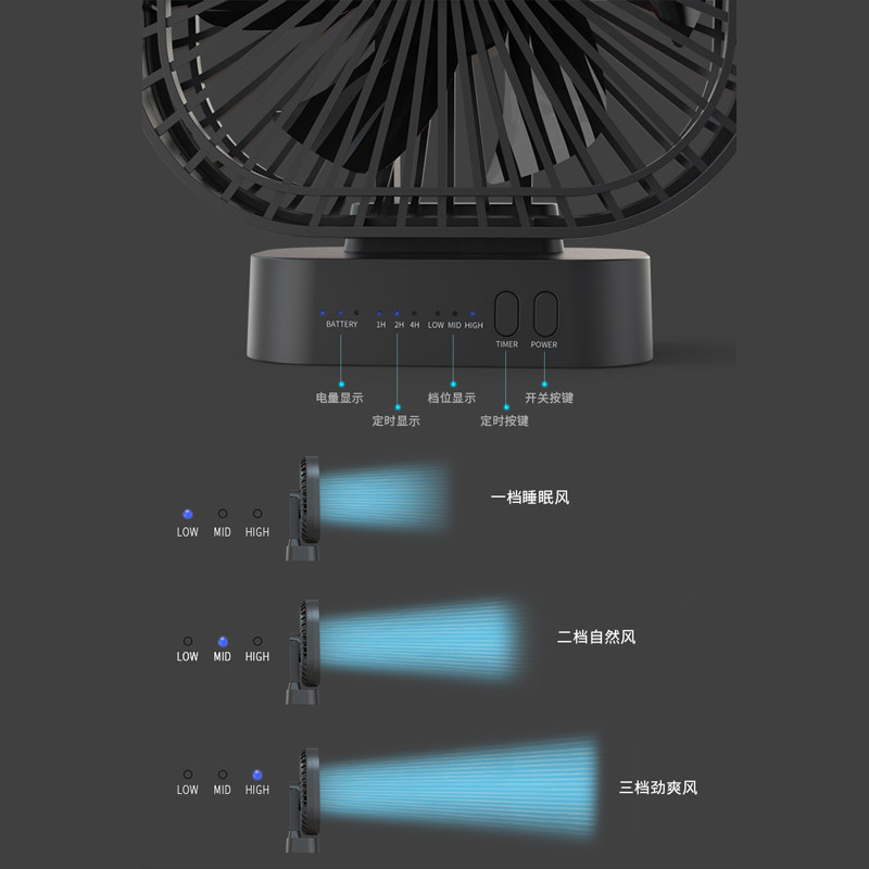 Rechargeable fan student class desktop dormitory bedside long battery life timing 5 magnetic suction small portable usb fan
