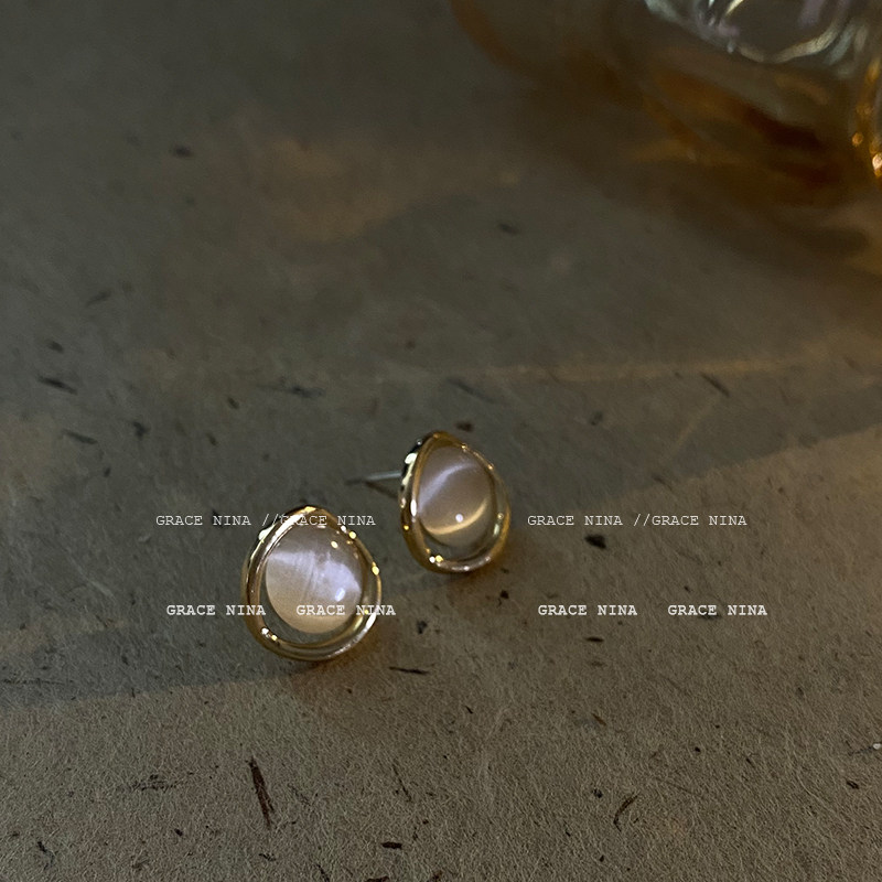 Circle the most precious You metal strips surround the cat Eye stone ear nail 2023 New wave advanced feelings light and luxurious otoliths-Taobao