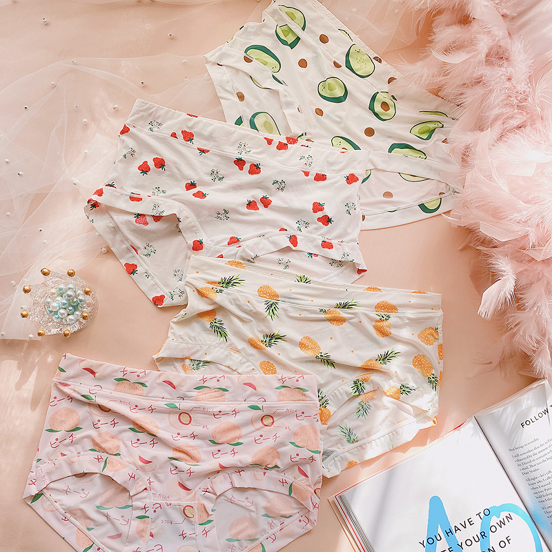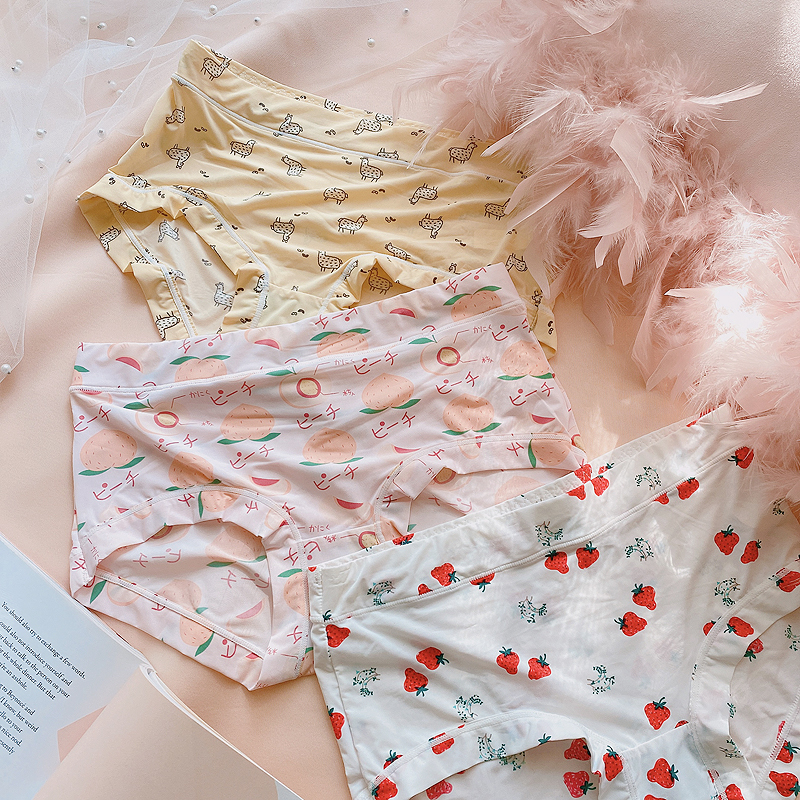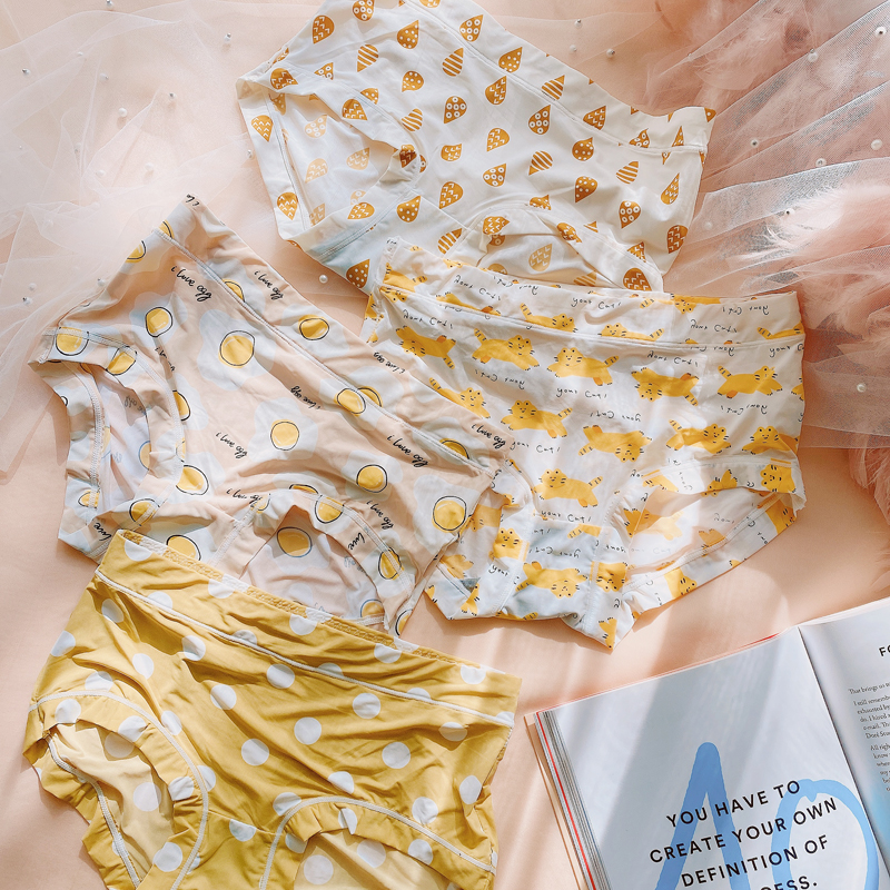 4 pack Japanese sweet ice silk underwear female cute cartoon plaid bag hip breathable mid-high waist shorts briefs - Taobao