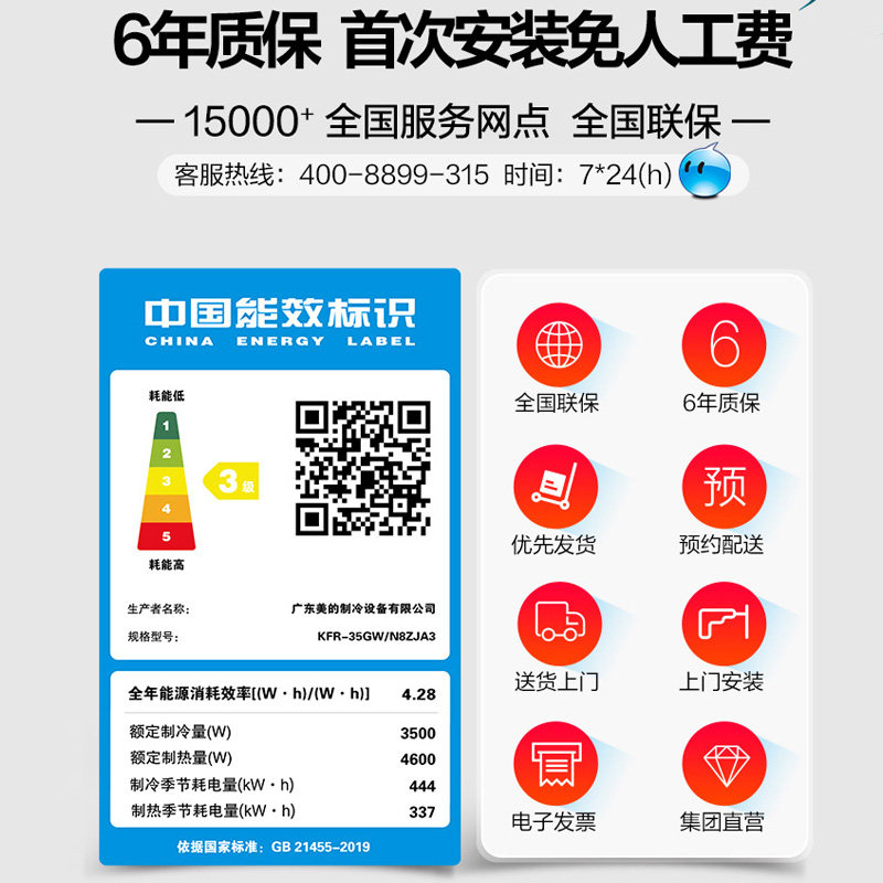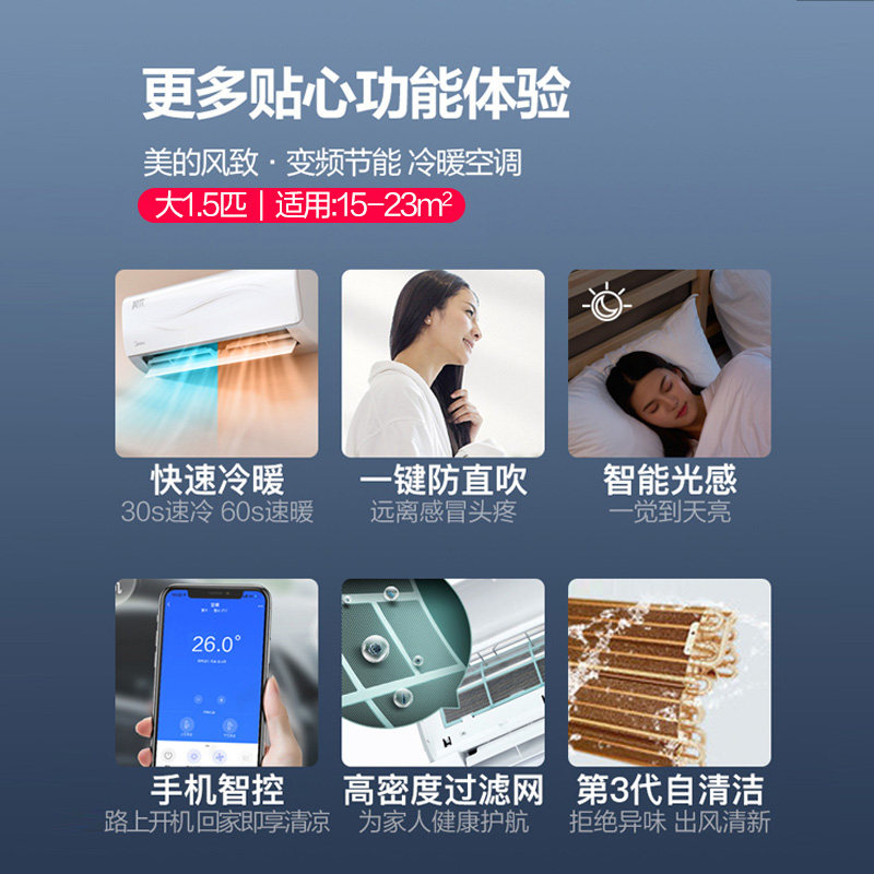 Beauty Air conditioning Large 1 5 pip frequency conversion wall-mounted wall-mounted cold air cold and warm dual-use home smart home appliances Wind 35ZJA3