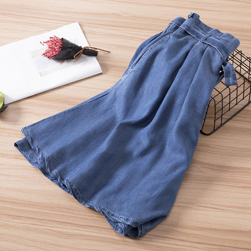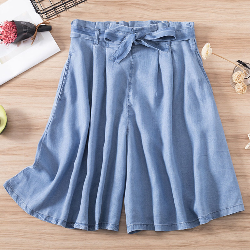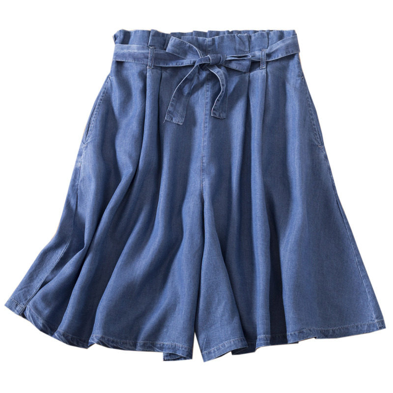 Sky Silk Jeans Summer Thin 50% shorts Han Fan loose Thin Lacing half skirt pants Pants Straight Barrel Wide Pants
