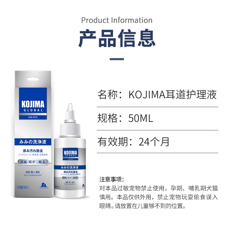 KOJIMA pet ear drops cat dog ear mite earwax removal smelly ear wash liquid ear canal cleaning supplies 50ml