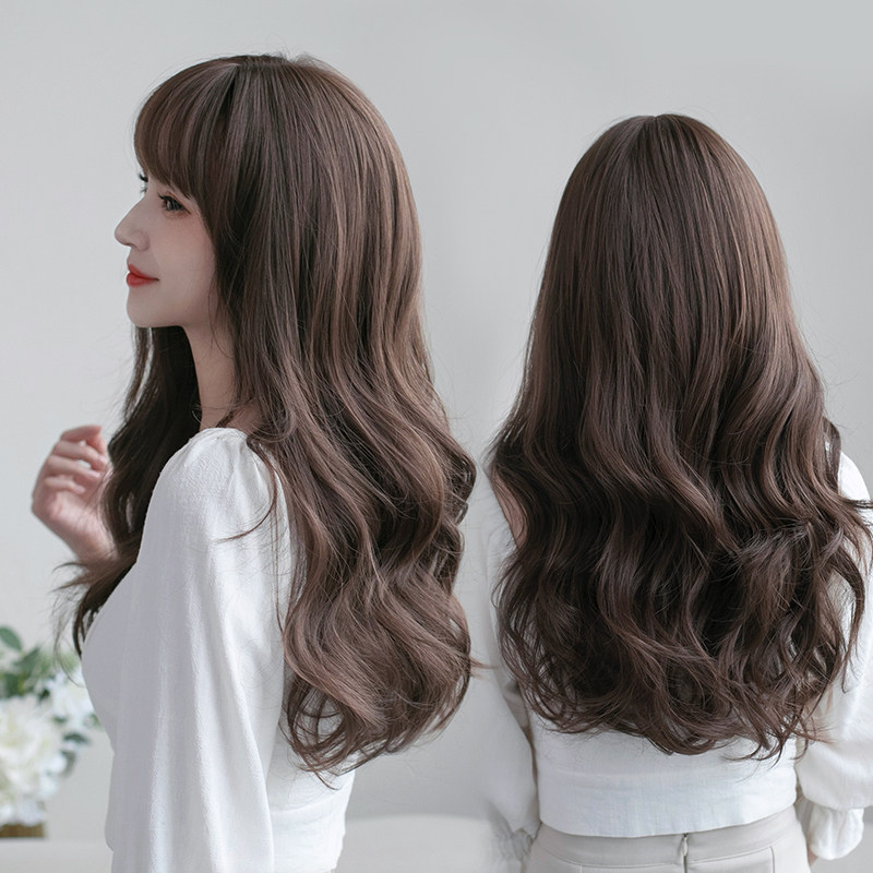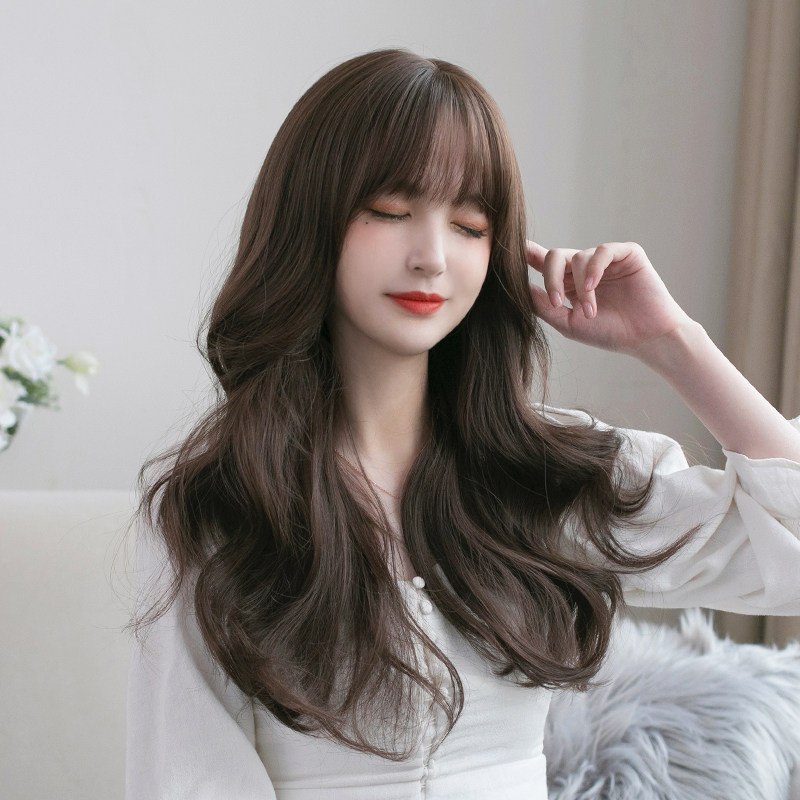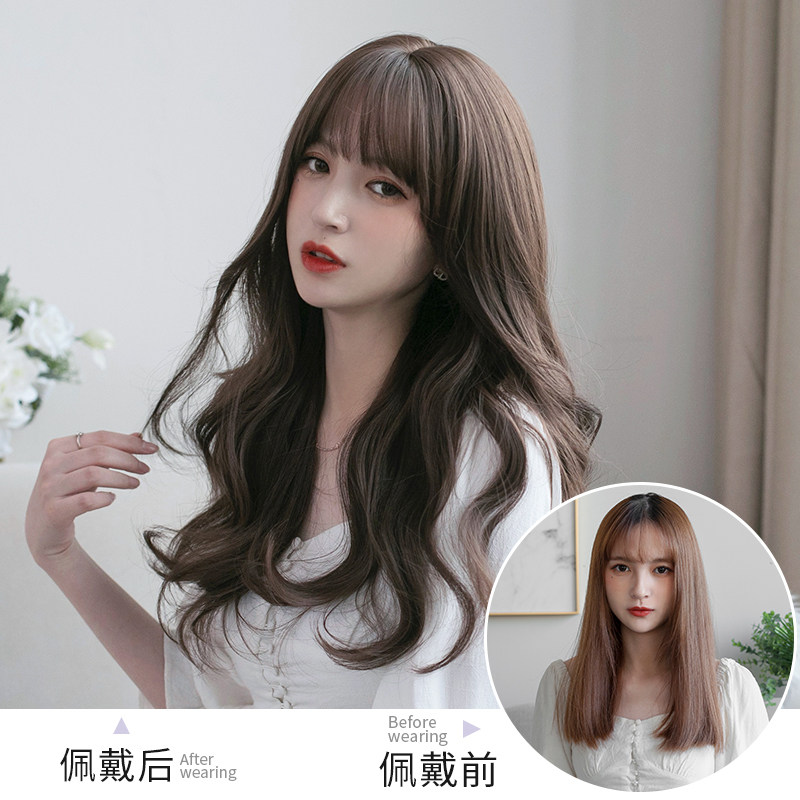 Korean Hairstyle Woman Microcurly Hair Net Red Large Wave Temperament Long Curly Hair Wig Woman Long Hair Wig Full Head Cover