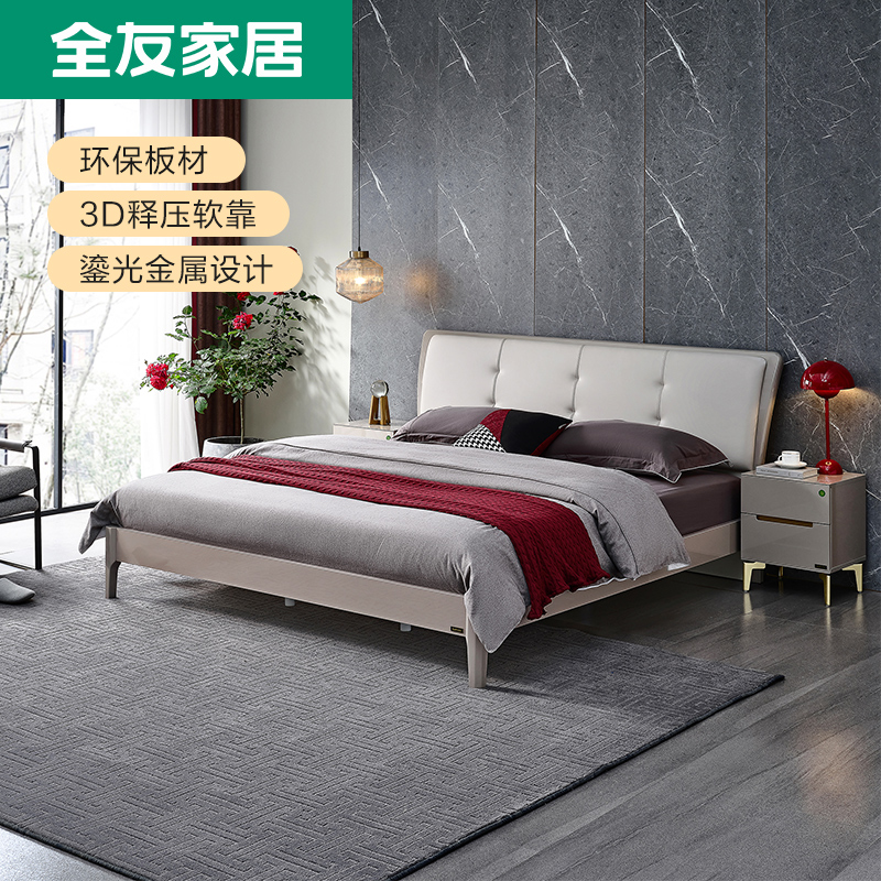 Full-friendly furniture modern light extravagant bed 3D pull-point soft bunk bed leather art bed metal platoon skeleton double bed 126003